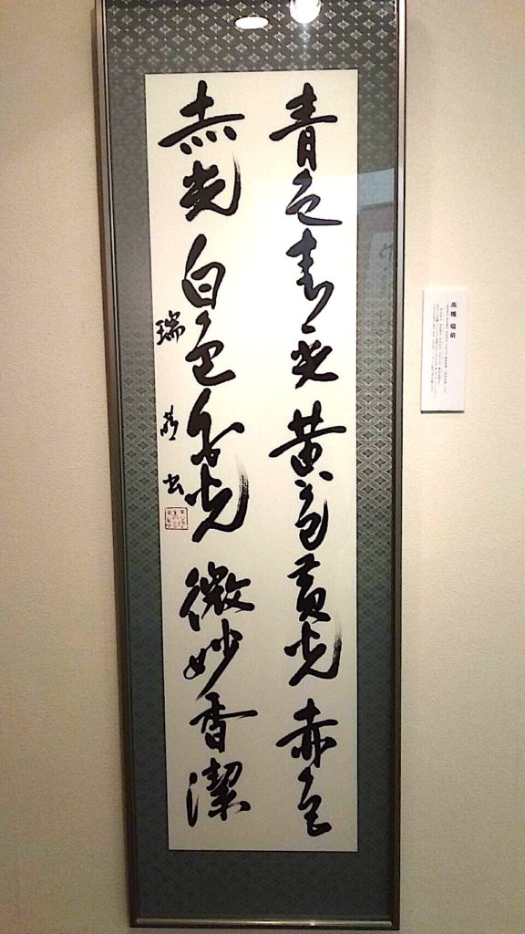 大阪会館に飾ってある阿弥陀経のお言葉「青色青光 黄色黄光 赤色赤光 白色白光」は、みずさんによる作品です。